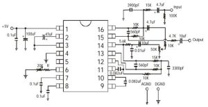 Un convertidor analógico-digital (ADC) de alta frecuencia de muestreo convierte los datos analógicos en un flujo de bits, que se almacena en la memoria RAM interna de 44 Kbits. Tras el procesamiento, el flujo de bits se demodula mediante un DAC y un filtro paso bajo. La frecuencia de reloj interna del VCO determina la duración total del retardo, y el usuario puede modificar fácilmente la frecuencia del VCO modificando la resistencia externa.