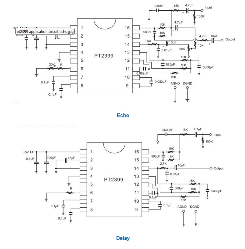 Esquemas de circuitos de aplicación del PT2399